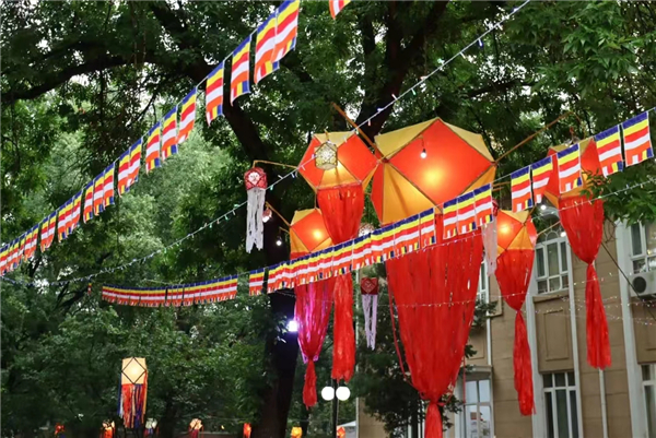 夜幕下点亮彩灯以及巨大的灯笼,宣告本次世界卫塞节圆满结束。