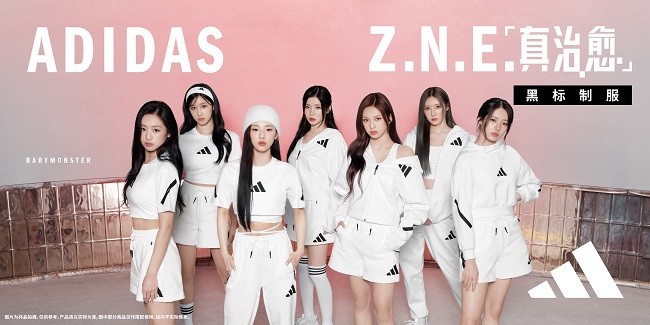 韩国流行音乐组合BABYMONSTER成员统一上身ADIDAS Z.N.E.「真治愈」黑标制服,通过服装上的黑色线条诠释团队精神。无论是在体育场、练习场、舞台还是生活日常,大家彼此心心相通,一起活力连连!