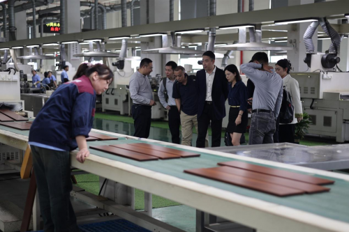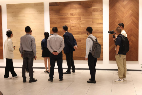 随后,一行人来到了久盛业态发展中心。在这里,他们对久盛的地板产品和优势进行了详细了解,并对久盛在环保、工艺、风格等方面的发展给予了高度评价。久盛凭借卓越的产品质量、创新的工艺技术、个性的风格特色,在市场上赢得了广泛的赞誉和消费者的信赖,久盛纯实木地暖地板连续7年全国销量领先。