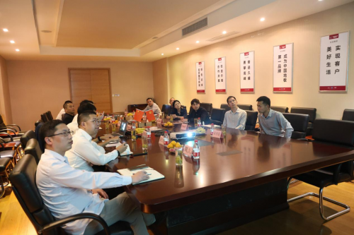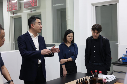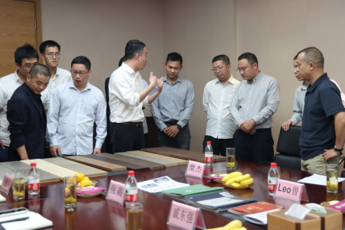 在企业研究院的参观中,Claudio一行认真听取了久盛的企业介绍,并参观了实验室,了解了久盛在产品研发方面的投入和强大实力后,对久盛的技术创新能力表示赞扬。久盛始终坚持技术创新和产品研发,不断地推出符合消费者审美和需求的新产品。