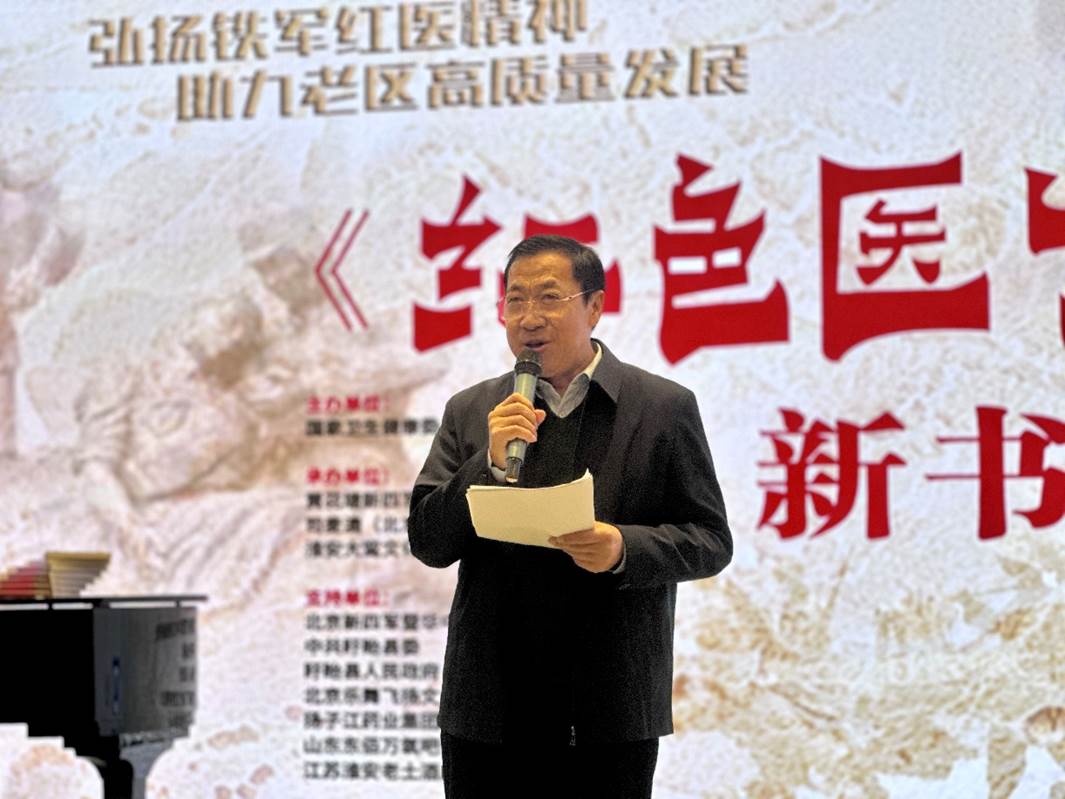 会上,中国人民对外友好协会原会长、北京新四军研究会原会长陈昊苏首先致辞,他说,《红色医生》这本书资料翔实,填补了新四军历史研究的空白,出版《红色医生》是一件特别有意义的事情,是一本好教材,青年朋友特别是医务工作者从中可以学习红医战士的高尚品质和牺牲精神,希望这本书能够成为连接过去与未来的桥梁,让更多的人了解和传承红色医生的精神,让我们的后代能够从这些英雄的故事中汲取力量,继续在新时代的征程上奋勇前进。他还深情回忆自己在淮南黄花塘生活过两年多时间,一直没有忘记黄花塘人民的情谊,他代表新四军后代感谢老区人民的养育之恩,祝愿黄花塘老区人民生活水平不断提高。