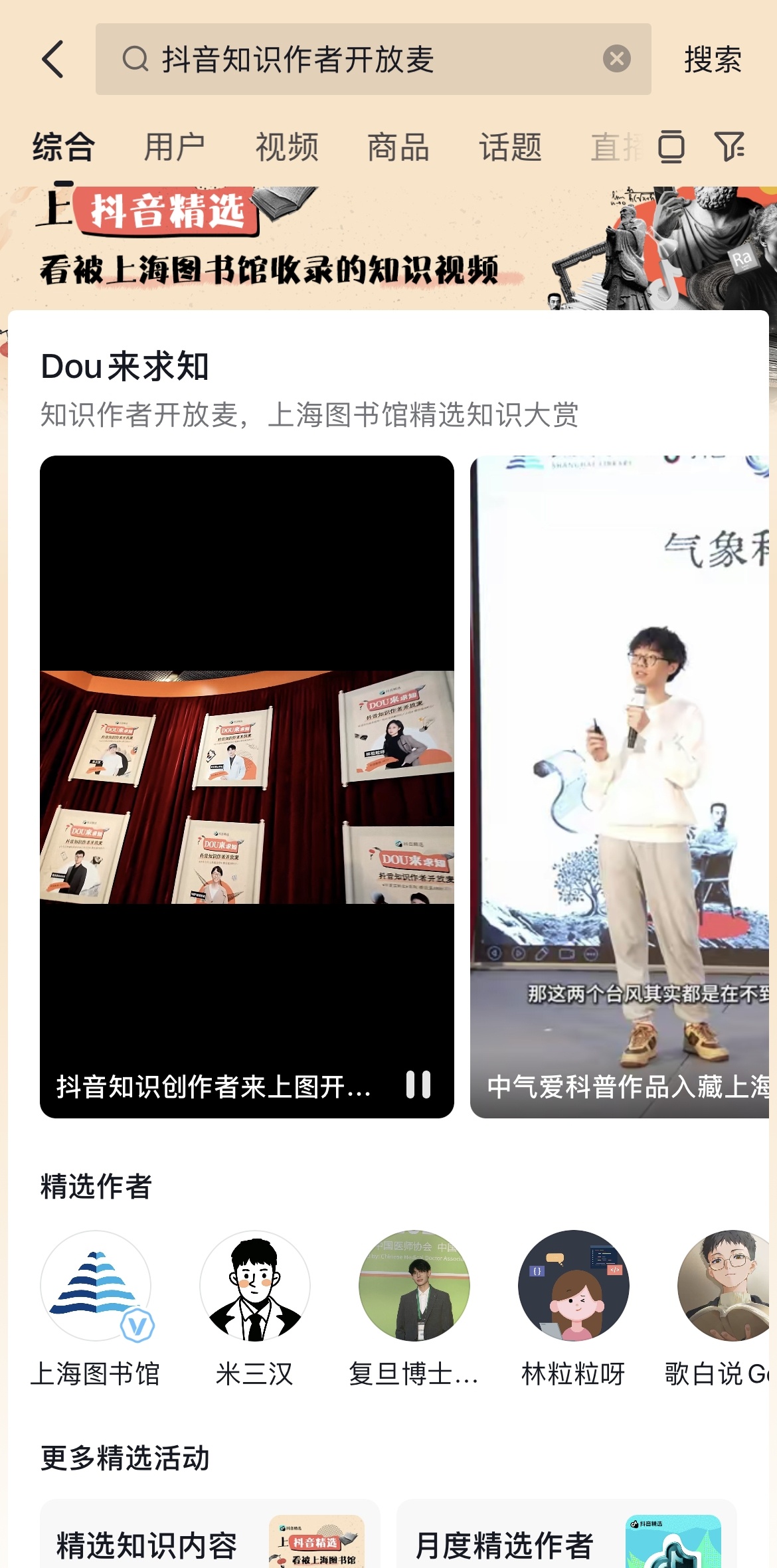 这些被上海图书馆收录的抖音知识精选作品和抖音知识作者开放麦的内容,也可以在抖音搜索查看啦!