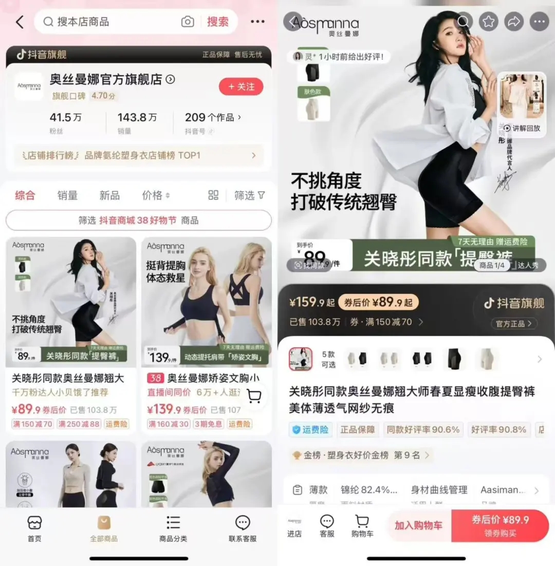 无独有偶,李静在抖音电商经营的内衣裤袜店铺中的某款无痕内裤也卖爆了,因为一条展示穿着无痕内裤练瑜伽的视频在平台上发布一周内获得了百万级别的播放。