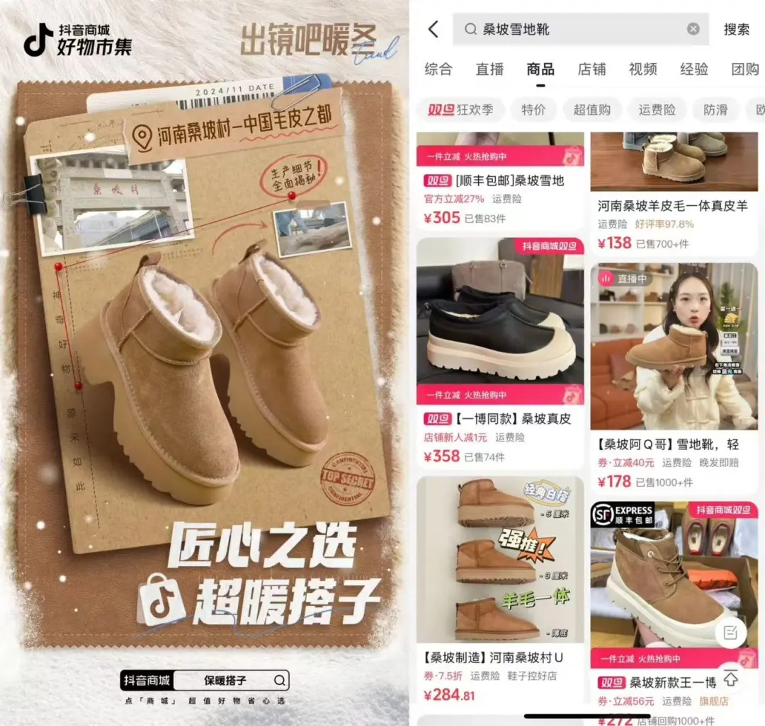 河南桑坡雪地靴战役绝非偶然,其本质是产业带商家在抖音电商生态中完成了从"赚快钱"到"造生态"的认知跃迁。
