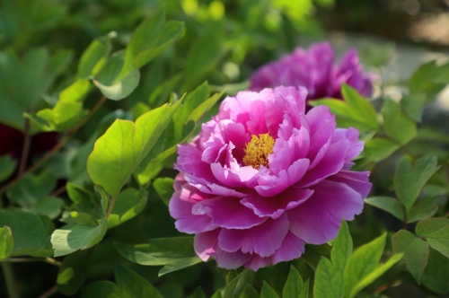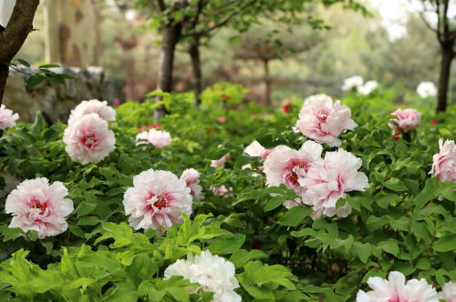 五万余株牡丹在园区内竞相生长,其中不乏自甘肃、山东等地精心引入的珍稀品种,涵盖数十个独特品类。本届牡丹节的焦点,当属来自菏泽牡丹园的百年古树“万卷书”。这株牡丹品种可追溯至清代邹一桂《牡丹二十四品图》,其红润饱满的花色、层叠繁复的花型与如华盖般舒展的树冠,无声诉说着昔日的宫廷风华。更有“鸣月”“凤求凰”“洛神”“点绛唇”五株近百岁牡丹古树相伴,形成跨越时空的牡丹文化矩阵,生动演绎中国千年牡丹栽培技艺的传承脉络。