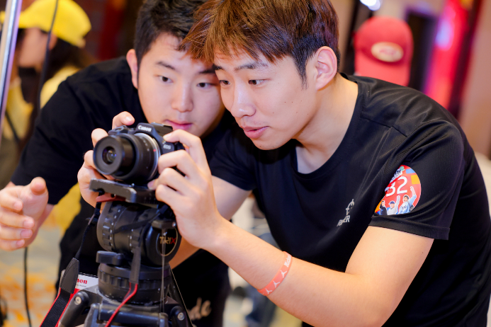 活动邀请到著名的旅拍Vlogger刘承宪为同学们带来了Vlog视频拍摄讲座。刘承宪在讲座过程中结合自己使用佳能产品拍摄的Vlog作品,与在场的同学们分享了许多实用的视频拍摄技巧和构思理念,也强调了器材对于影像创作的重要性。著名摄影博主纳纳酱介绍了他使用佳能相机拍摄人像大片的心得。本次活动还邀请到赵龙导演,分享了他使用佳能3D VR镜头拍摄空间视频的感受,同学们积极互动,踊跃提问,纷纷前往现场的体验区上手拍摄。