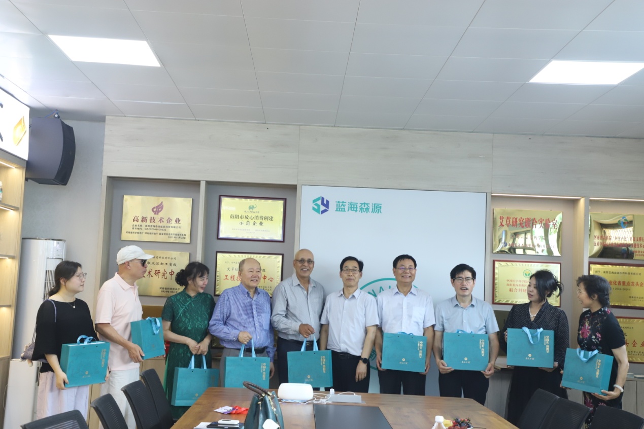在蓝海森源董事长廖兴林等高管的陪同下,考察团参观了企业文化展厅、非遗工坊及现代化智能生产车间,详细了解了企业在中医药文化传承、传统手工艺保护、生态艾草种植、研发创新及产业化应用等领域的实践成果。