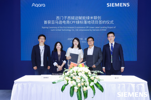 7 月 17 日下午,第三届中国国际供应链促进博览会在北京中国国际展览中心新馆(顺义馆)举行,Aqara 受邀出席,并在现场与西门子西碳迹SiTANJI正式签署了碳足迹解决方案协议。此次签约标志着双方共同推进的首个亚马逊 CPF(Climate Pledge Friendly)绿标落地项目正式启动,将加快 Aqara 智能家居产品获取欧盟市场准入所需的碳足迹认证,打造中国智造绿色出海新范例。