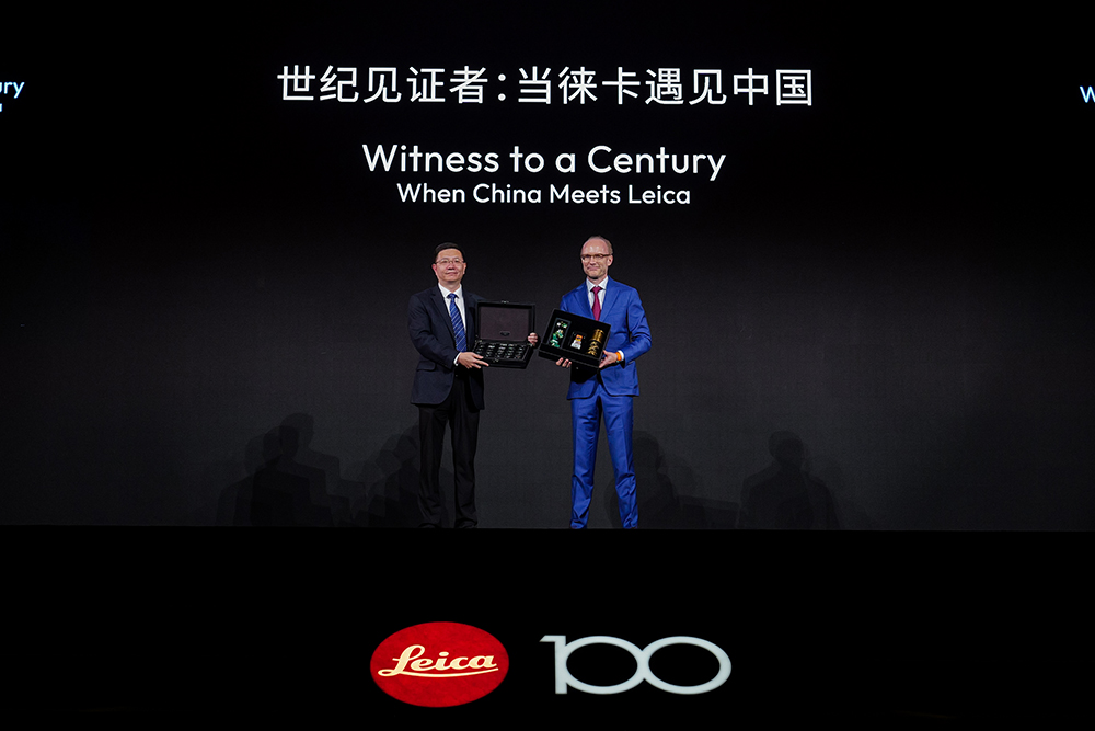 从左至右:上海邮政博物馆代表徐镔、徕卡相机大中华区董事总经理Siegmund Dukek