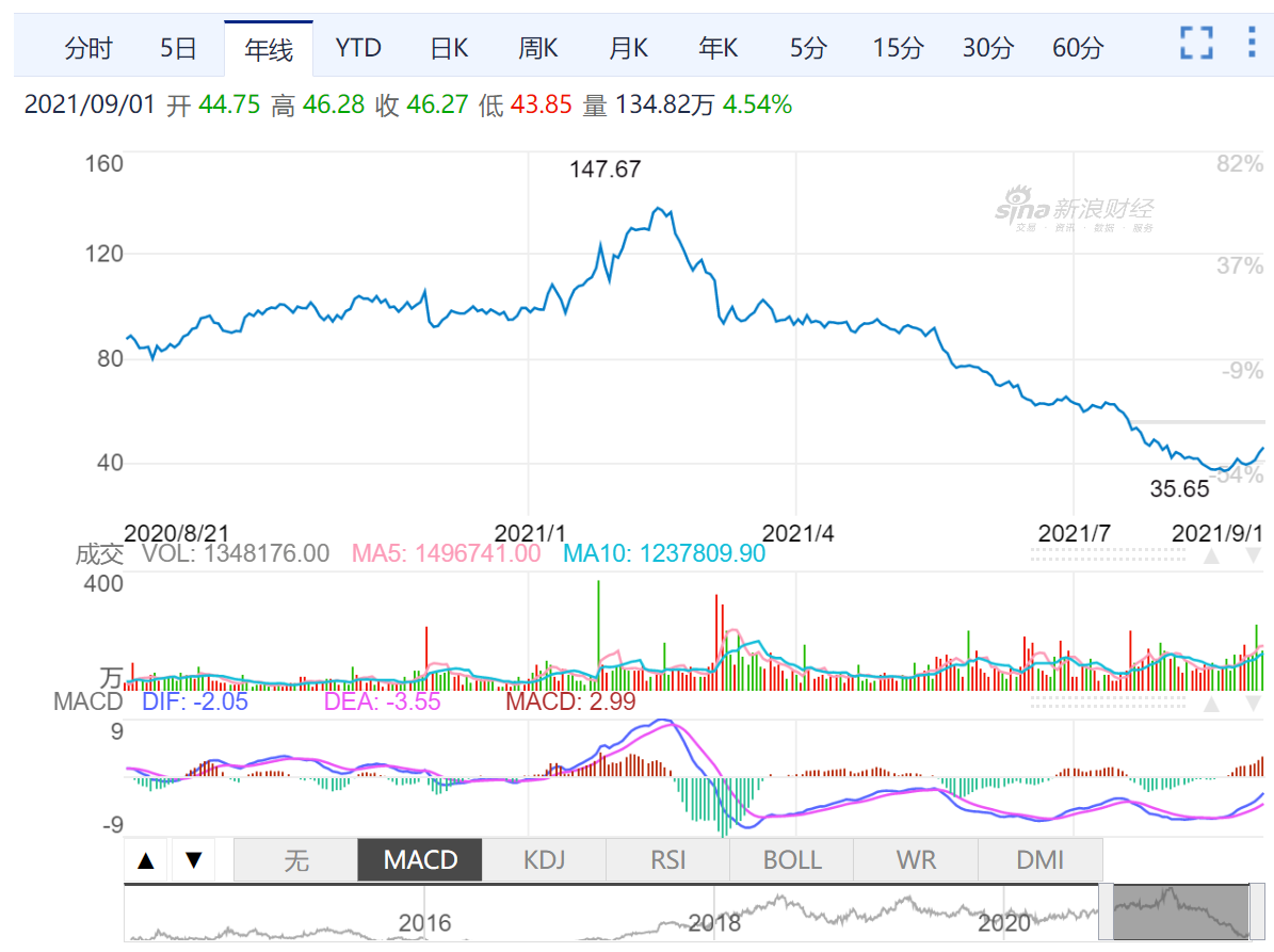 与此同时,汽车之家在股票市场的表现也不尽如意。在港股市场,从今年3月23日的最高点199.6港元一路走低,截止9月1日,股价跌至84.3港元,直接跌去一半多。在美股市场,今年7月,摩根士丹利分析师Eddy Wang将汽车之家评级从高配降至平配,目标价从106美元下调至50美元,截止发稿前,汽车之家美股已跌至44美元左右,整体表现颓势。