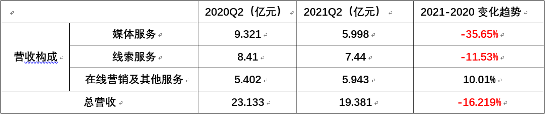 汽车之家主营业务媒体服务板块2020-2021Q2同比下降35.65%,媒体服务、线索服务大幅度的下降,之家陷入失去主营业务的困局。急速下降的业务毫无疑问的宣告着汽车厂商及经销商对汽车之家的抛弃之势。