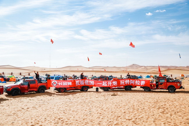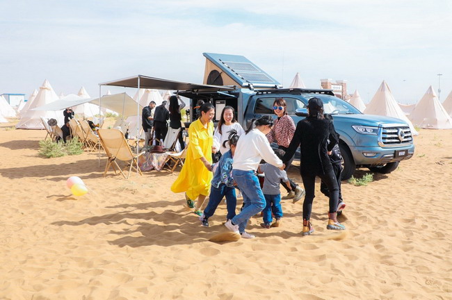 车主活动中,长城炮以歌唱祖国沙漠快闪、荒野美食体验、沙漠音乐会、沙漠竞技赛、亲子游园、车主之夜等丰富多彩的活动,为用户奉上最硬核的宠爱,让用户真切体验到越野狂欢与皮卡文化交融的盛宴!