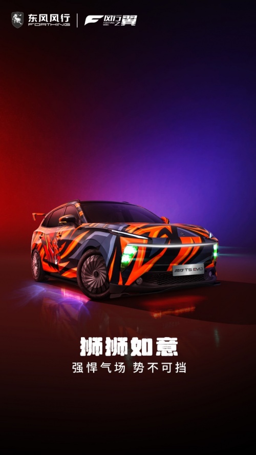 在众多祝福语中,“万事如意”是出现频率最高的一句,风行T5 EVO将它延展并与品牌图腾融合,用“狮狮如意”表达一切顺遂的心愿,用“强悍气场 势不可挡”展示奋力向前的冲劲;海报中,全车黑橙撞色不规则条纹涂装的风行T5 EVO狮虎潮年版热烈奔放,右侧面的雄狮车贴,仿佛让人听到四面回响的狮吼,自带豪放洒脱BGM。