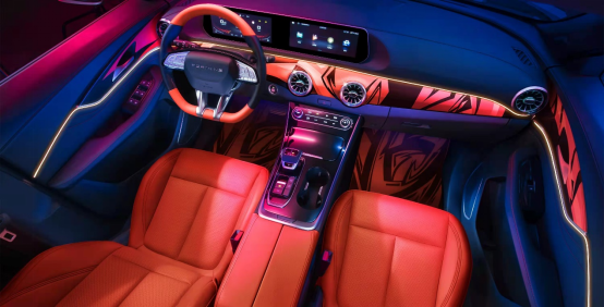 进入车内,设计师以猛虎皮毛般的橙色纹路、大胆的黑橙撞色设计打造过目不忘的视觉冲击,尤其是前排头枕上细致精巧的虎头刺绣,无不传递出虎虎生威的匠心设计,风行T5 EVO狮虎潮年版在彰显野性魅力的同时,更将“危险又迷人”的身姿展现得淋漓尽致。