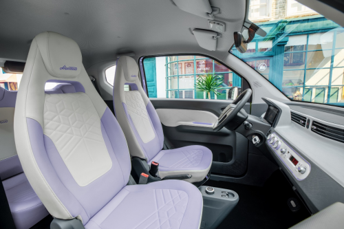 座椅、门扶手采用质感皮革包覆,触感温润舒适,面料缝线采用时尚高端的菱格绗缝工艺,轻奢精致。专属设计座椅让用户即时体验柔软贴合的拥抱式快意,舒适与美观兼备;前后排座椅上均有专属Macaron刺绣,细节之处尽显格调和用心。