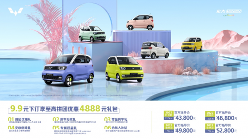人民的代步车宏光MINIEV全系3.28万元起,满足用户多元化需求。宏光MINIEV马卡龙缤纷款(120km)、绘色款(170km)售价分别为4.68万元、5.28万元,即日起,广大用户通过LING Club APP/小程序线上9.9元下订,享至高拼团优惠4888元礼包。