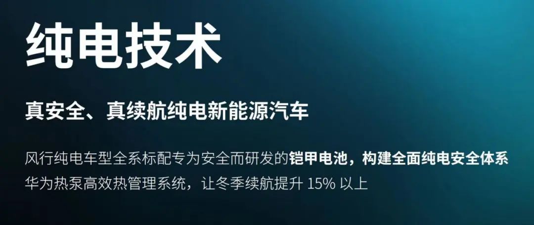 东风风行发布第一款新车是风行雷霆,这是一款纯电SUV,东风风行为它配备了全新发布的铠甲电池,并配备华为TMS 2.0热泵管理系统。前者提供了可靠的电能供应,后者则降低了冬季极寒天气对电池造成的衰减。