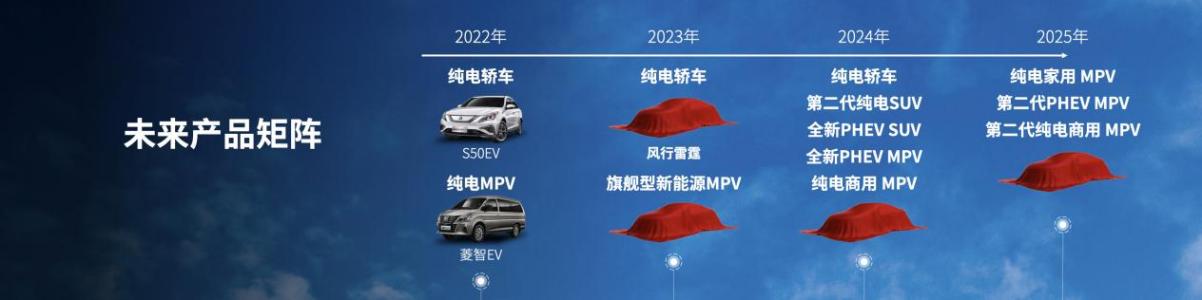 根据规划,未来东风风行将打造出纯电+混动并驱的双技术路线,截至2025年底,东风风行将推出3大类型10款新能源产品,品类覆盖轿车、SUV和MPV。