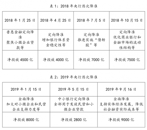 2019年,两次全面降准都是针对小微企业和民营企业,降低社会融资成本,一次定向降准剑指中小银行,通过释放中小银行资金,对口支持民营和小微企业贷款。净投放量约2万亿元。