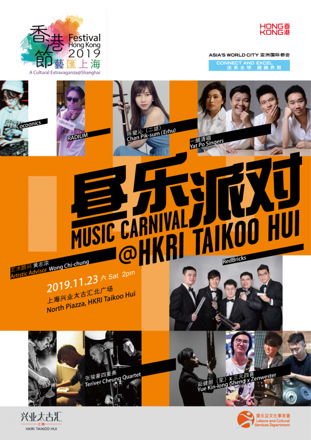此外,11月23日,一场轻松愉快的户外音乐派对将在兴业太古汇北广场举行,多位香港菁英音乐人及乐队同台献技,逾两小时无间断为乐迷送上各种香港好声音。昼乐派对融合民族乐器表演、无伴奏合唱剧、爵士音乐、流行说唱等精彩内容的跨界合作,打破新与旧、东与西的屏障,迸发年青活力,为“香港节2019──艺汇上海”画上完美句号。