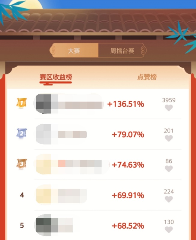 目前,由腾讯金融科技主办,国信证券独家冠名,腾讯微证券公众号、腾讯自选股客户端、腾讯财讯公众号为核心支持平台的腾讯全民模拟炒股大赛“冬月赛”进入短兵相接阶段,前排的选手想保住领先优势,后排选手通过换股等操作不断拉近与前排距离。今日收益排行榜上又见新面孔,“停XX步”首次杀入前三,该选手收益率经过蓄势后目前已达74.63%。冠军仍是选手“刘XXXXX啊”,良好的持股心态让其经受大幅波动后,再次以136.51收益率排名第一。