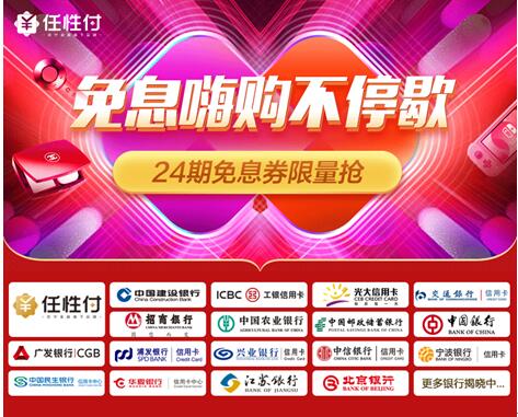 此次818,任性付还联合了建行、工行、光大、交行、招行、农行、邮储、中行、广发、浦发、兴业、中信、宁波、民生、华夏、江苏、北京17家国内主流银行,打造“最强免息联盟”。活动期间,在苏宁易购APP购买指定商品,选择“任性付”支付—使用任性付分期或已绑信用卡分期,即可享最高24期分期免息,名额有限,先到先得。此外,更有建行、工行、农行、交行、邮储、北京、光大等银行,联合中国银联“再加码”,推出分期免息再满减,最高减300元的优惠活动。