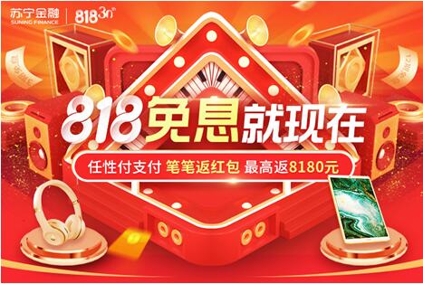 818期间,上苏宁买买买,付款时选择“支付方式——分期付款——苏宁任性付分期”,即享全场自营商品至高24期分期免息,还能笔笔返红包。最高可返8180元,说不定下一个锦鲤就是你!苏宁易购APP内搜索“免息”,进入“24期分期免息专场”,精选爆款已经为你挑选好,每天低至几元钱,就可把好物带回家。