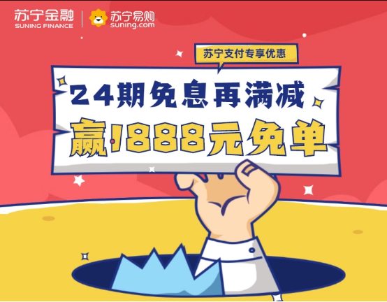 即日起至9月30日,苏宁支付、任性付联合农业银行、中国银行、建设银行、工商银行、邮政储蓄银行、招商银行、浦发银行、交通银行、平安银行、民生银行、中信银行、广发银行、光大银行、江苏银行、华夏银行、北京银行、宁波银行17家银行进行分期免息优惠,最高24期免息。
