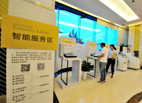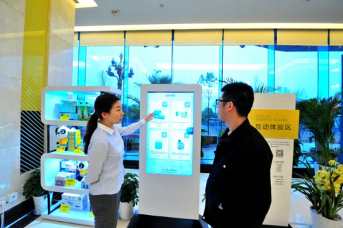 在移动互联网的大趋势下,天府银行在2018年初就创新性地建立了智能网点实验室,瞄准客户体验和服务场景化打造,发力智慧银行、智能网点的建设。每一个智能网点都配置了智能综合柜员机、智能打印终端、多功能现金机、智能互动屏等先进智能设备,机器对人工的替代,为零售客户带来更为便捷、高效、智能化的服务。