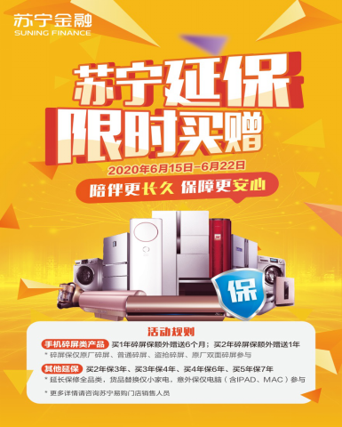 618年中大促,苏宁各大门店即将成为欢乐的购物海洋。在海量的优惠商品中,手机、家电类无疑是最受人们关注的焦点。为了让自己辛苦选购的爱机延长使用寿命,购买延保服务已成为众多消费者的习惯。苏宁金融旗下苏宁延保近日推出限时买赠活动,碎屏险买1年赠半年、买2年赠1年,家电类延保买2年赠送1年,最高买5年赠2年,全方位护航您的爱机,让您免除奔波维修的烦恼。