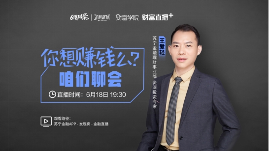 618不仅只有买买买,能赚会花才是财商高的体现。为了让大家GET更多赚钱技能,苏宁金融财富学院特推出618财富管理主题直播,特邀创金合信资产配置服务专家谭硕、苏宁金融理财事业部资深投资专家王爱轻,跟大家聊聊赚钱的诀窍。两位专家的直播时间分别是6月17日19:00、6月18日 19:30,届时登录苏宁金融APP,点击“发现页-金融直播”即可收看。