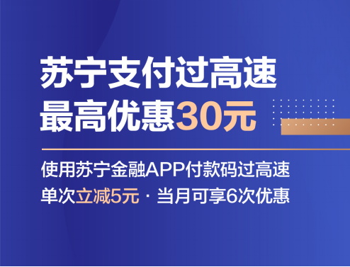 11月1日至11月30日,新老用户使用苏宁金融APP进行高速扫码付款,可享受立减5元的优惠,每人每月限6次,共计可节省30元。本次优惠将覆盖沪蓉高速无锡枢纽至南京段、南京绕城高速长江三桥段、京沪高速沪蓉段、京台高速京福段、京台高速徐州西北绕段、京台高速连徐段等江苏境内共399个收费站,1711条出口通道及南京绕城、南京四桥收费路段。
