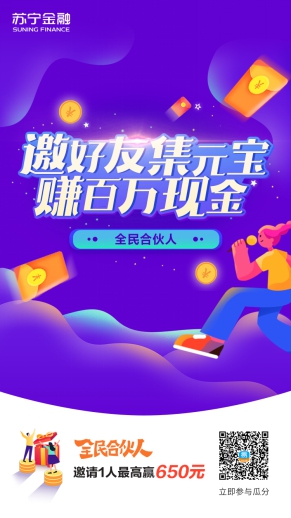 如此好玩又好赚的事情怎能一个人独享?赶紧下载苏宁金融APP,呼朋唤友加入合伙人吧!