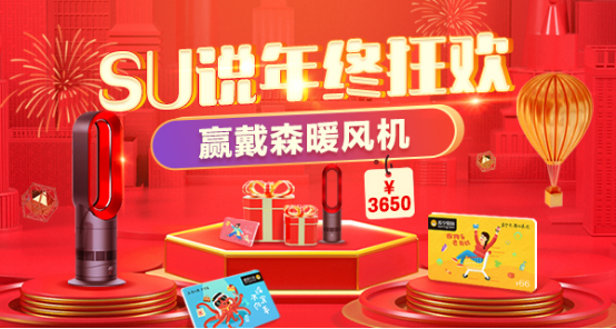 2020已经接近尾声,年终狂欢节加上双十二大促,又会摩擦出怎样的火花?苏宁双十二百亿补贴加码,年终狂欢节百亿补贴范围扩大至本地生活服务,大家不仅可以在线上随心购,还能感受本地低价优质的生活服务,直降到位,不玩套路。苏宁卡SU说好礼,还能赢价值3650元的戴森暖风机,快来温暖整个冬天!