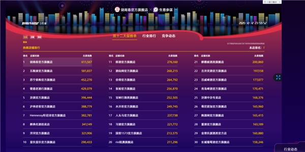 2020年全球经济形势总体呈现增长乏力态势,白酒行业却展现出了强大的韧性,以大品牌领跑,全行业稳步增长的动能趋势,取得了总体情况好于预期的成绩。这种情况在“618”、“双11”、“双12”这全年的三次大促活动中体现尤为明显。