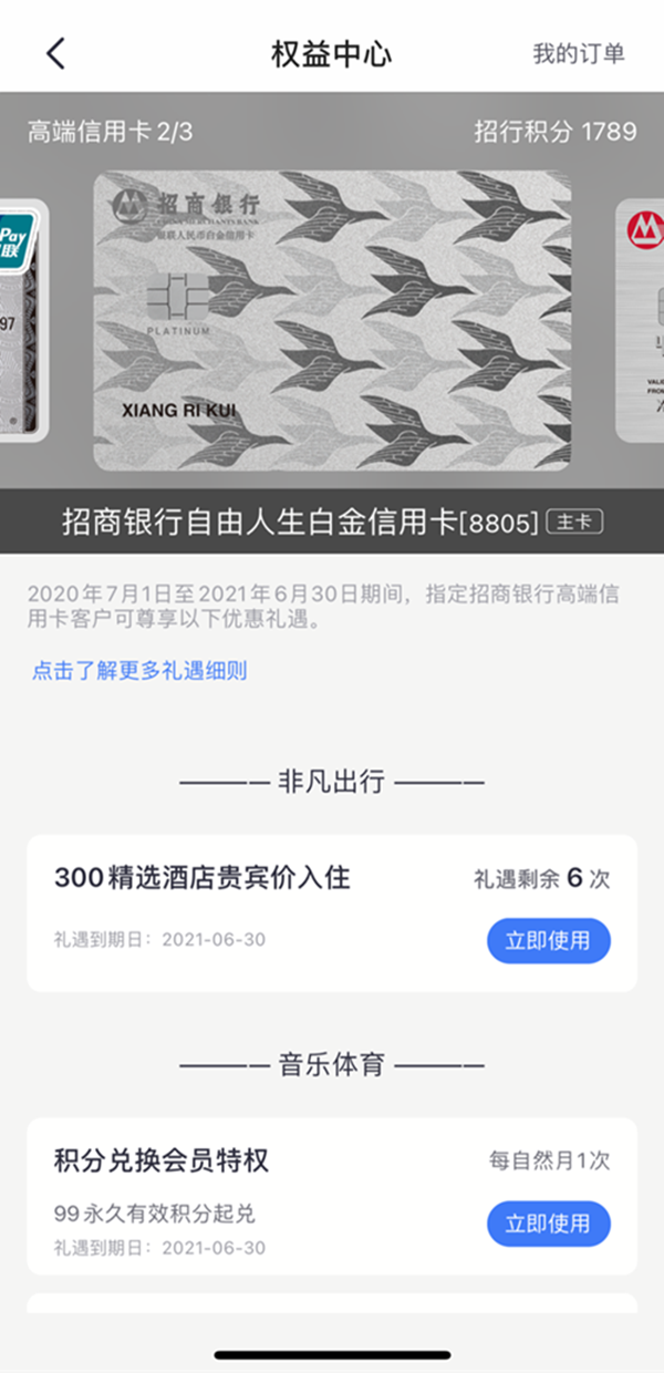 产品迭代之余,招行信用卡也始终紧跟高净值客群消费理念和生活形态的变化,用不断升级的产品礼遇提升用户体验。