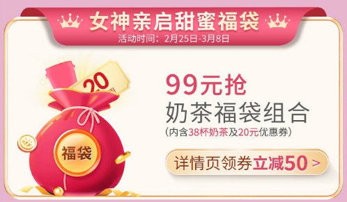 作为最懂奶茶控小仙女们的香飘飘,还特别推出“女神亲启甜蜜福袋”节日专属链接,38杯不同口味奶茶集锦,一次满足女神们多种口味需求,心动的小伙伴可以立即行动起来了。