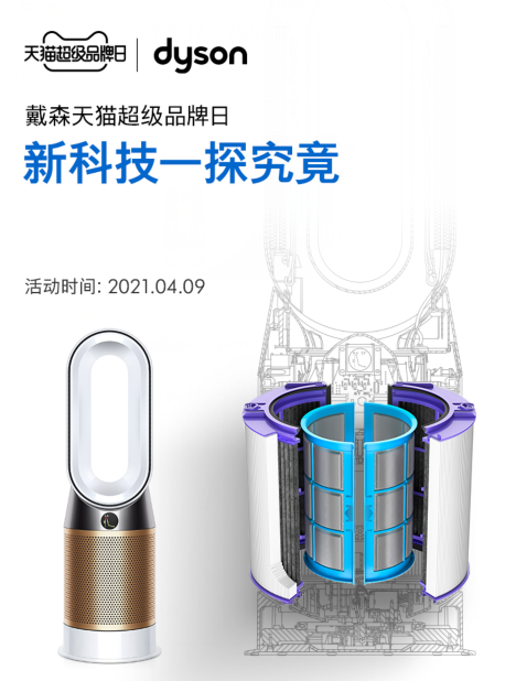 4月9日,戴森在天猫官方旗舰店正式启动天猫超级品牌日,携吸尘器、吹风机、空气净化风扇全品类产品,守护消费者的居生活家健康,为消费者打造健康舒适的室内家居环境。