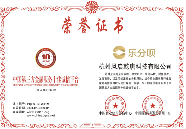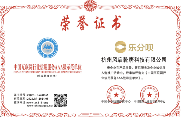 近日,以创新数字金融为核心的营销支付平台乐分呗的全国运营总部杭州风启乾唐科技有限公司,凭借过硬的技术、创新的科技理念、诚信的市场运营等多方面优异表现,荣膺《中国互联网行业信用服务AAA级示范单位》、《中国第三方金融服务十佳诚信平台》、《浙江省诚信质量服务示范单位》等多项殊荣。
