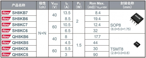 全球知名半导体制造商ROHM(总部位于日本京都市)开发出内置有2枚耐压±40V和±60V的MOSFET且支持24V输入的双极MOSFET*1“QH8Mx5/SH8Mx5系列(Nch+Pch*2)”,非常适用于FA等工业设备和基站(冷却风扇)的电机驱动。