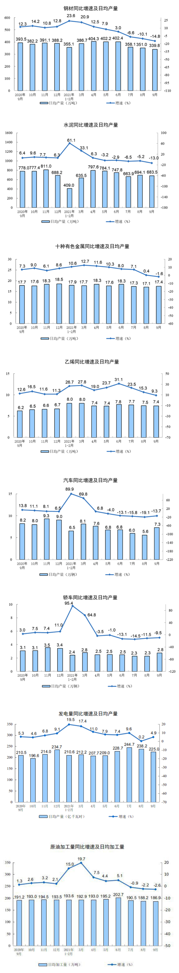 | 汽车(万辆) | 218.6 | -13.7 | 1855.4 | 9.4 |