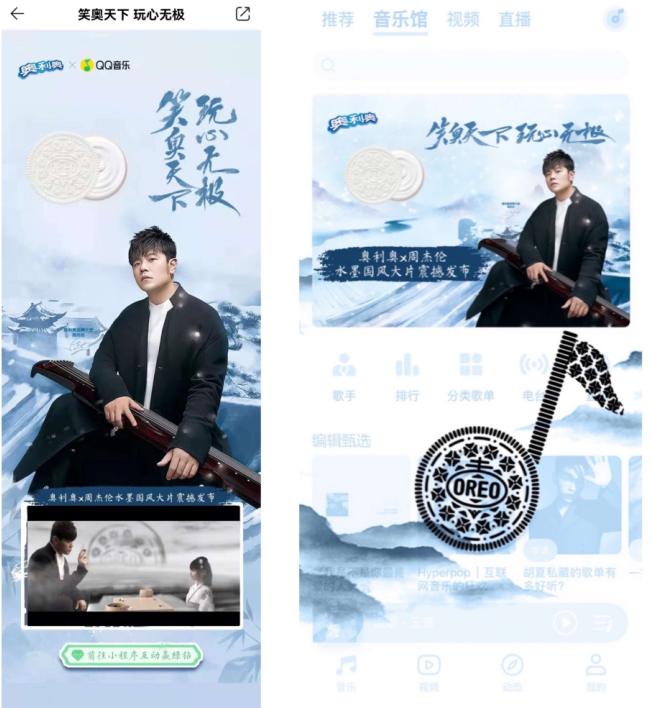 在这水墨长卷中,奥利奥与周杰伦共同演绎《发如雪》《青花瓷》《兰亭序》等经典国风作品,更有周杰伦的御用编曲谱写神秘国风新旋律。一段古筝前奏便让大家瞬间进入国风的世界,梦回遥远的过去,就像浓墨散开于水中,这幅令人感叹「爷青回」的音乐画卷也缓缓展开。