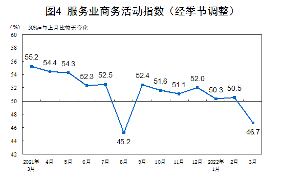 3月份,非制造业商务活动指数为48.4%,比上月下降3.2个百分点,非制造业景气度降至收缩区间。