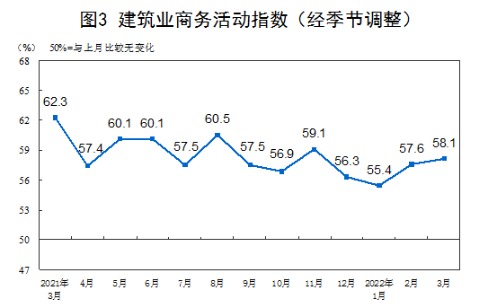 业务活动预期指数为54.6%,虽比上月下降5.9个百分点,但高于临界点,表明多数非制造业企业对市场发展仍有信心。分行业看,建筑业业务活动预期指数为60.3%,比上月下降5.7个百分点;服务业业务活动预期指数为53.6%,比上月下降6.0个百分点。