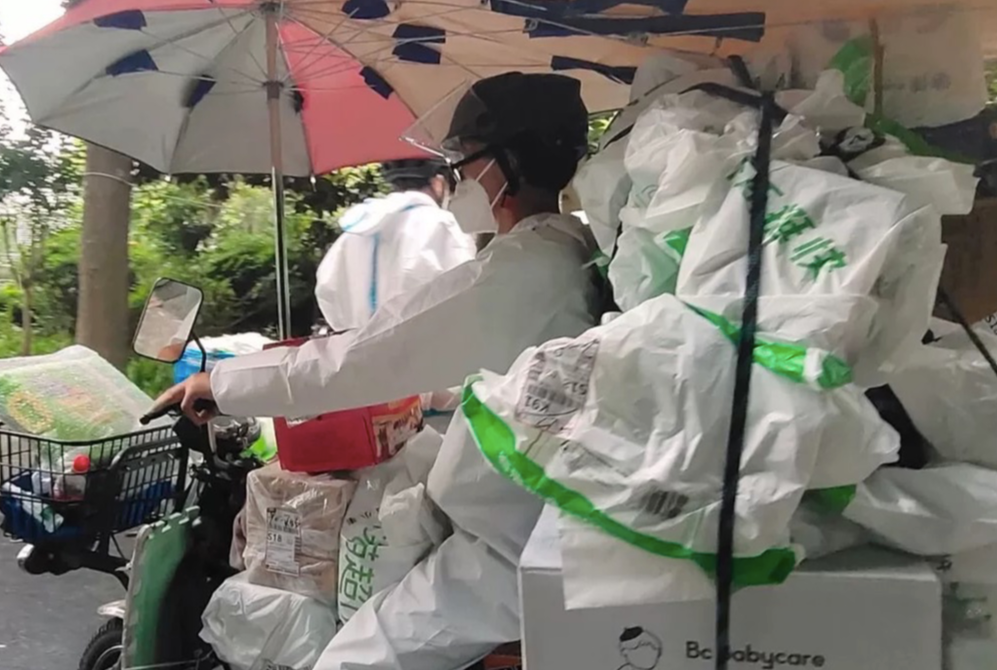 由菜鸟直送为天猫超市提供的配送服务,也在有条不紊恢复中,据陆健称,菜鸟直送提供高质量送货上门服务,同时我们也积极配合疫情防控要求,对于不能送货上门的小区,我们基本上交给小区的“大白”转送到消费者手中。“针对分拨、配送等流程,菜鸟也严格对货物包装进行几轮消杀,快递员也在站点安排下集中食宿,48小时的核酸、24小时的两次抗原,上传以后办理个人电子通行证再进行配送。”