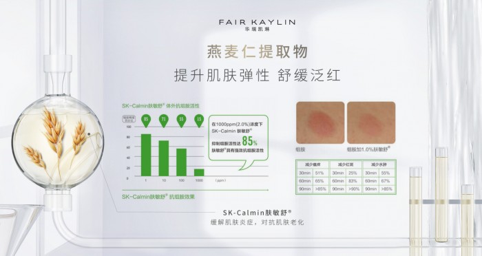 特别添加源自燕麦仁的天然活性成分——SK-Calmin肤敏舒®,具有美白保湿和帮助肌肤快速抗炎抗过敏的功效;同时也能促生天然胶原蛋白生成,提升肌肤弹性,具有抗氧化能力,可以有效延缓肌肤衰老。