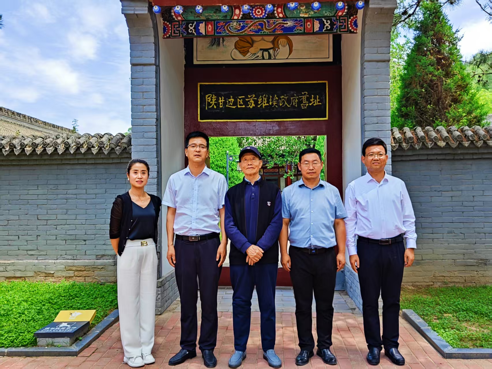 2023年夏,张俊彪(中)专程拜谒陕甘边南梁苏维埃政府旧址