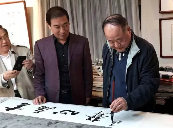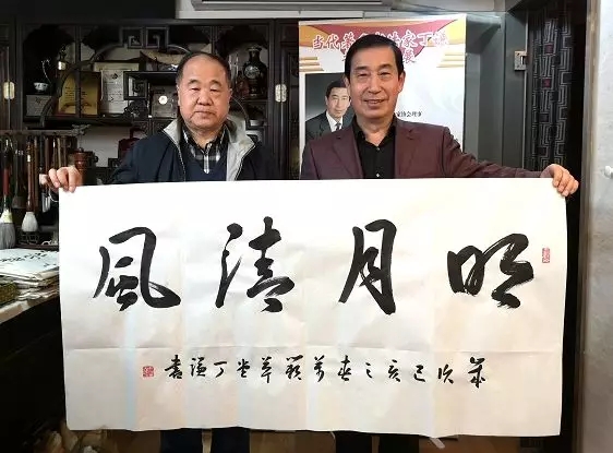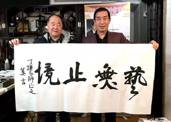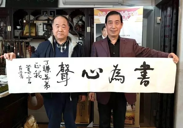 2019年4月10日下午,诺贝尔文学奖获得者莫言先生及著名军旅作家王树增先生、王瑛女士、李骏先生,著名二胡演奏艺术家李祥章先生等一行莅临丁谦书法工作室参观指导。