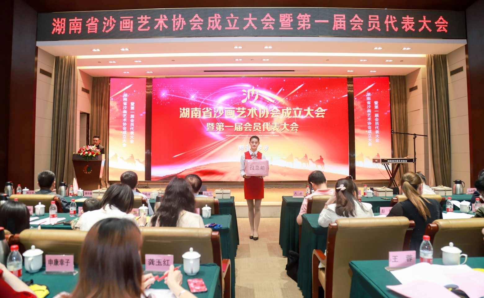 湖南省沙画艺术协会第一届会员代表大会审议表决《湖南省沙画艺术协会章程》以及投票通过会费标准,选举协会第一届领导机构