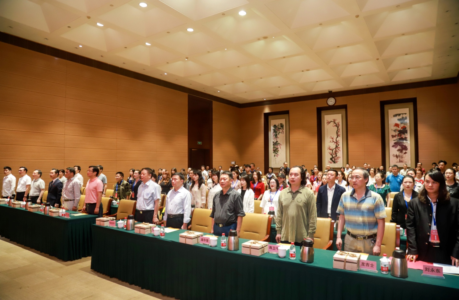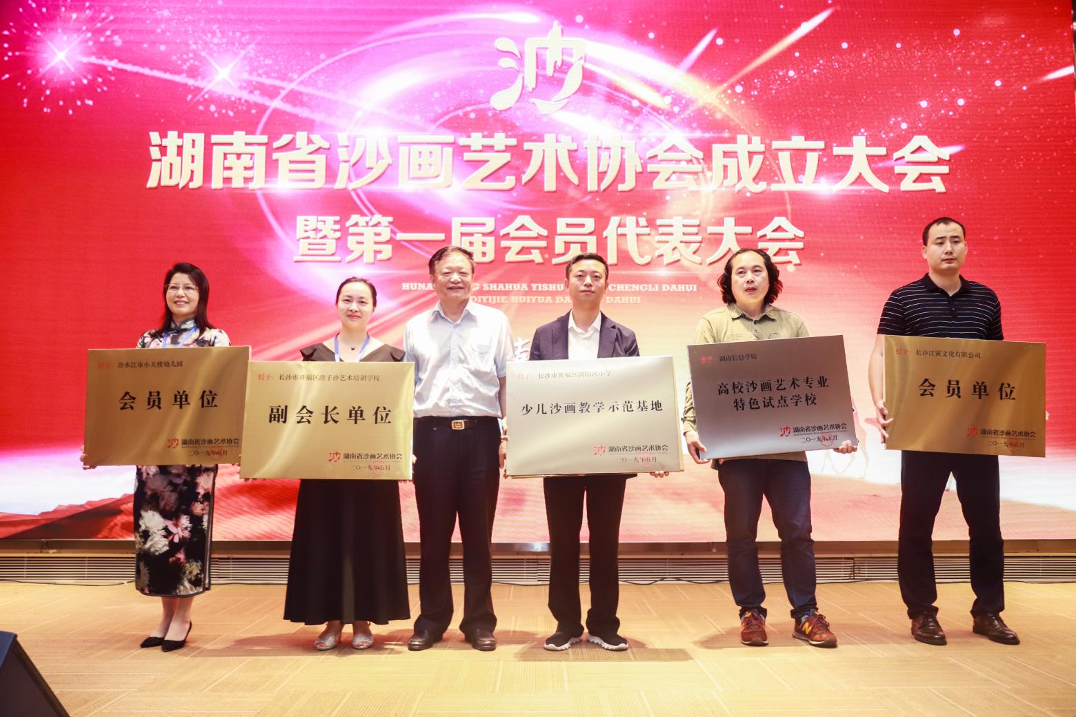湖南省沙画艺术协会成立大会上,全体会员起立齐唱《国歌》